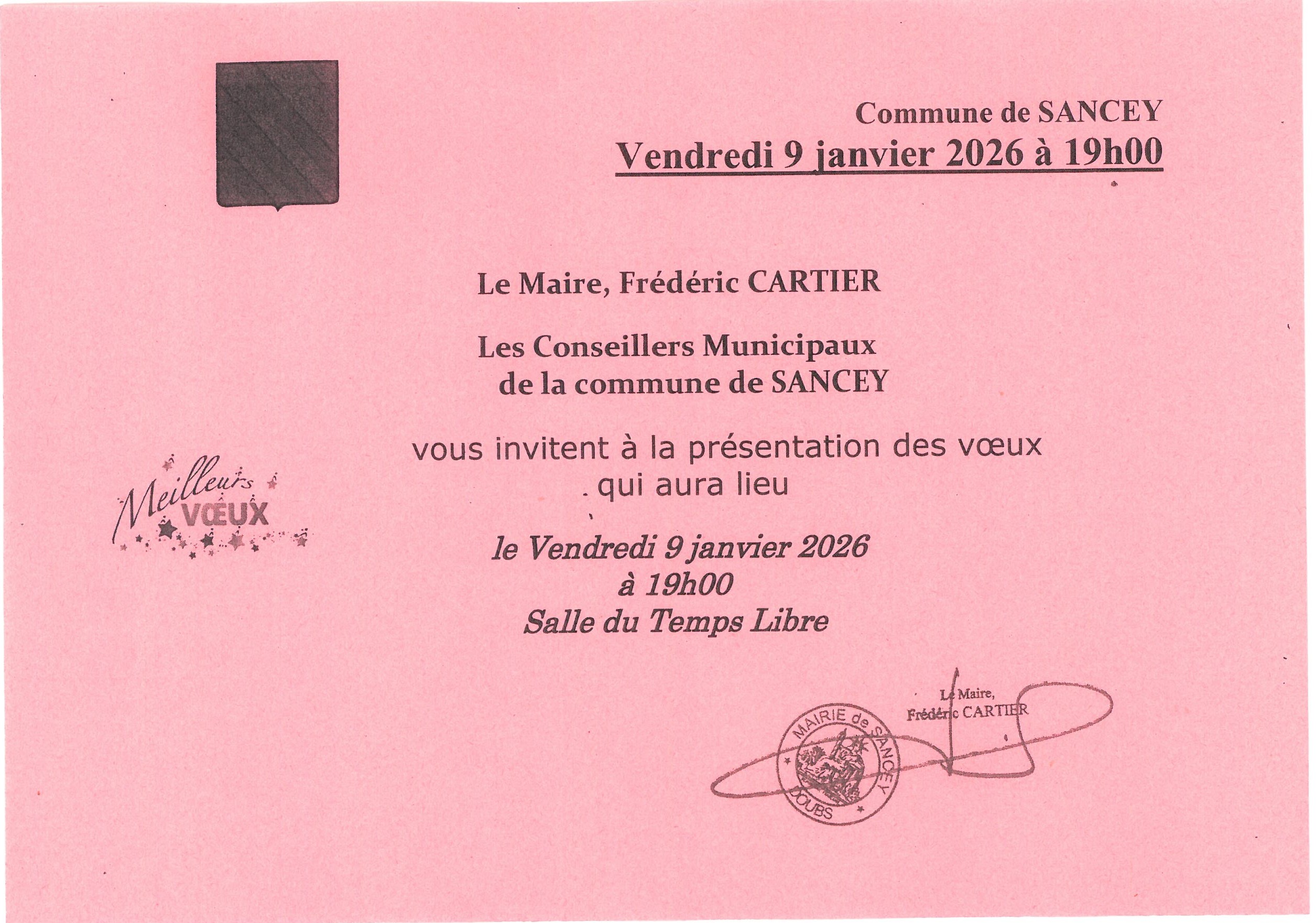 Vendredi 9 janvier 2026 à 19h voeux du Maire à la Salle des Fêtes